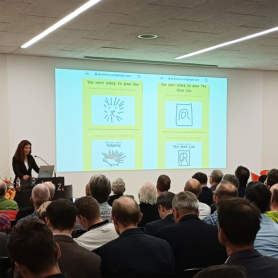 Mit spannenden Impulsen zu Künstlicher Intelligenz und menschlicher Weisheit begeisterte uns Dr. Sarah Genner. Sie zeigte eindrucksvoll, warum Trainingsdaten der Schlüssel zu KI-Systemen sind – und weshalb Menschlichkeit im digitalen Zeitalter wichtiger denn je bleibt. Unsere Gäste konnte mit einem kleinen KI-Experiment selbst aktiv werden und erleben, wie Daten entstehen. Dies entlockte so manches AHA und Schmunzeln. 💡
